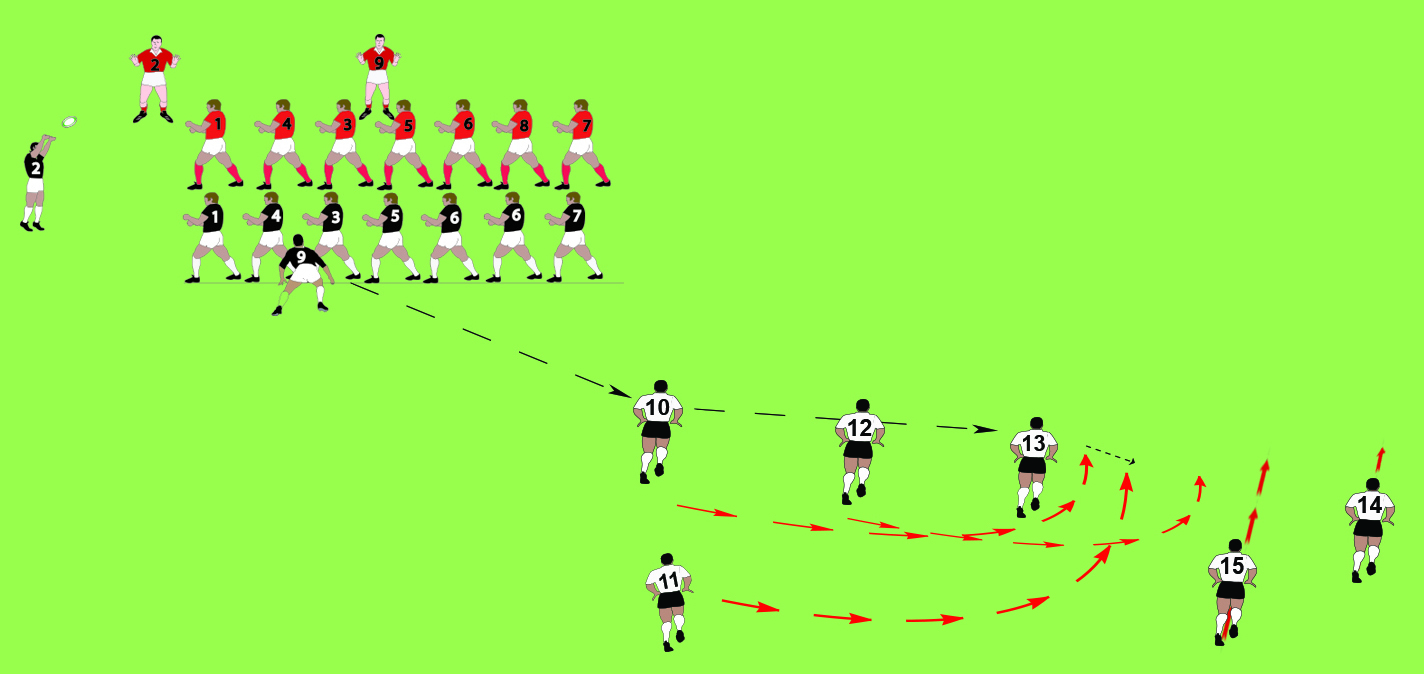 The key aspect is to create situations whereby the defending player at the end of the lineout is taken out of play as much as possible therefore requiring the backs to tackle the man that they are opposing when the lineout is formed.
