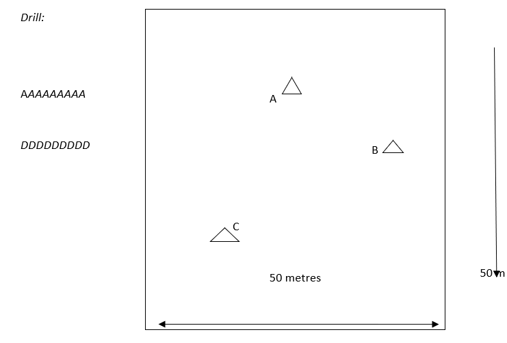 The same process will happen one more time, this phase another defender (first ‘A’) drops out. In each case the attack should be attacking the spaces through good decisions based on ‘looking and ‘communicating’ with each other.