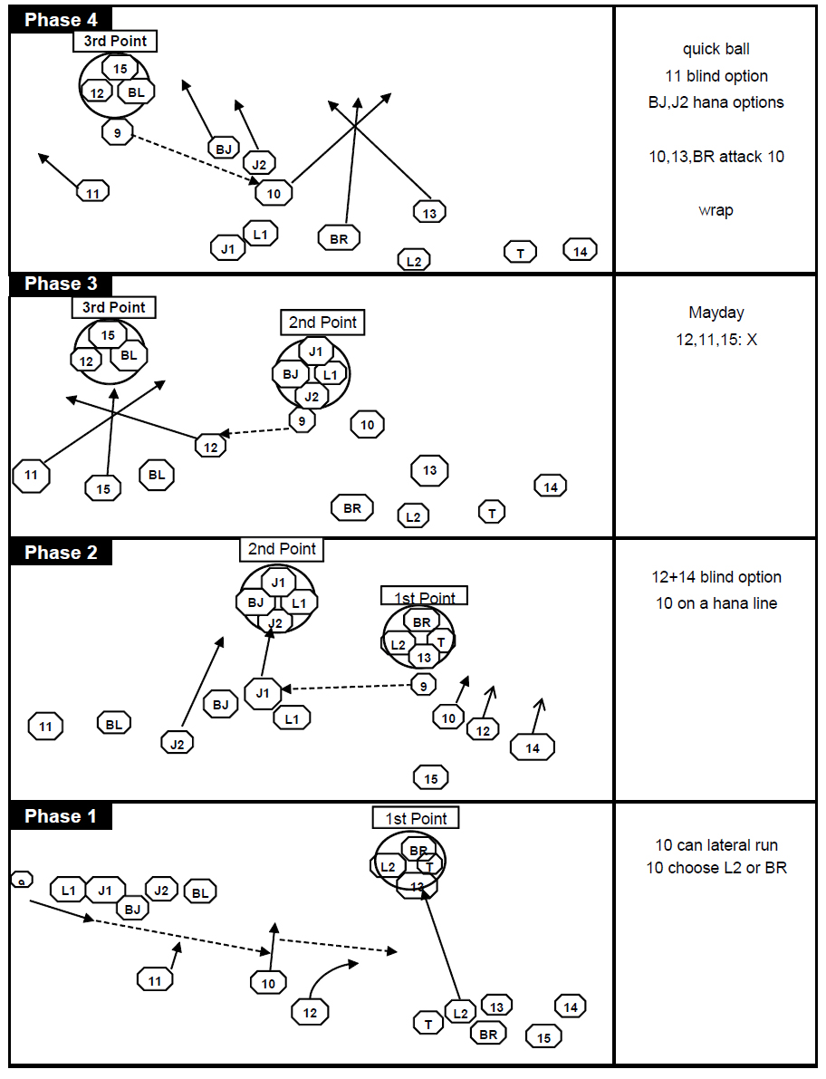 • Enforcing phase plays to be organized just as the starter plays normally are which provides for variations of usage rather than just having a flat passing line from the ruck.