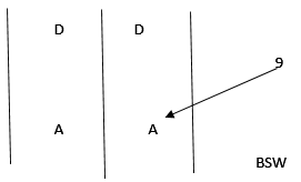 b) Switch/Scissors: Player with the ball heads off on a lateral run in to the next channel. The player receiving the pass does not leave their channel until the one they are going to run in to is completely free. The space the ball carrier has just left is often the best space to attack.