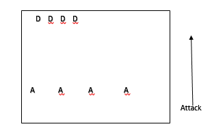 The 4 defenders line up on Line 2 where they hold, go forward in unison and drift hard to stop the attack who initially threaten and pass as their attack method.