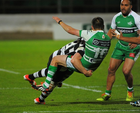 The scenario may well start with a backline marking up against another backline or at phase play when there is a mix of backs and forwards defending together. Create a situation where the defenders are outnumbered and the wide attackers attack the last player in the defensive line.