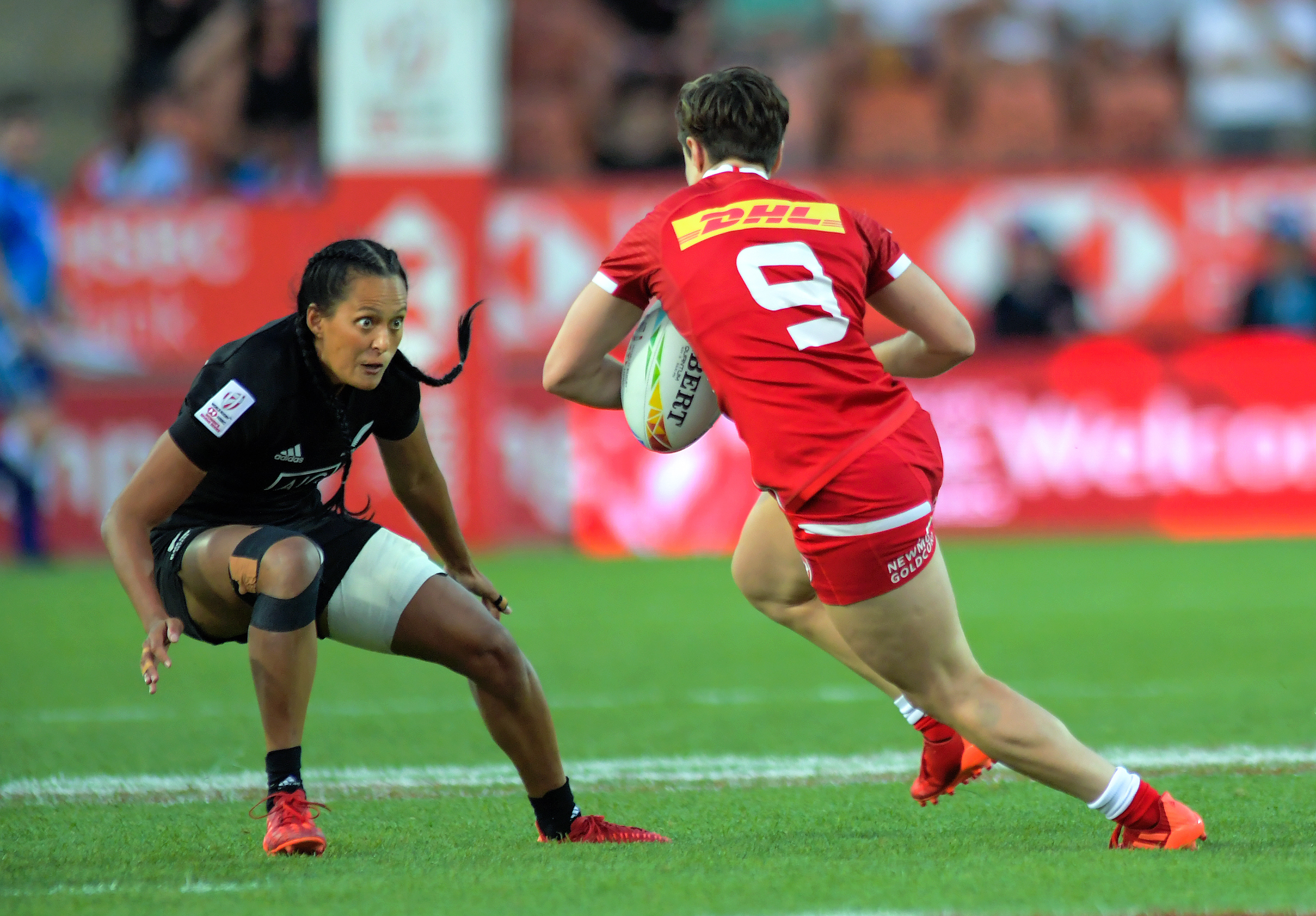 The kicking team now becomes the defending team and moves forward aligned across the field so they can defend each member of the attack, the team now in possession.