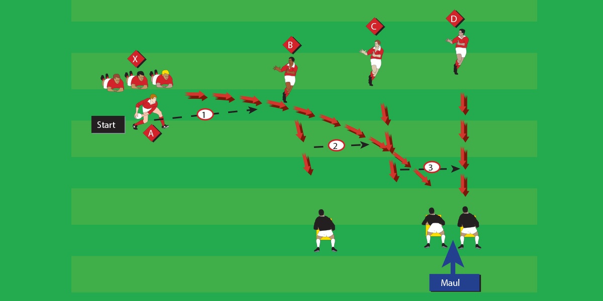 - Once the forwards reach the defenders they must organise themselves so to maul the ball back.