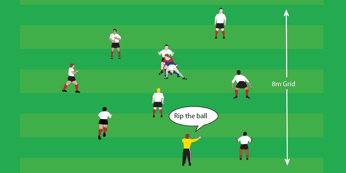- The supporting player drives shoulder and upper arm into the ball-carrier and twists down to rip the ball whilst driving with the legs.