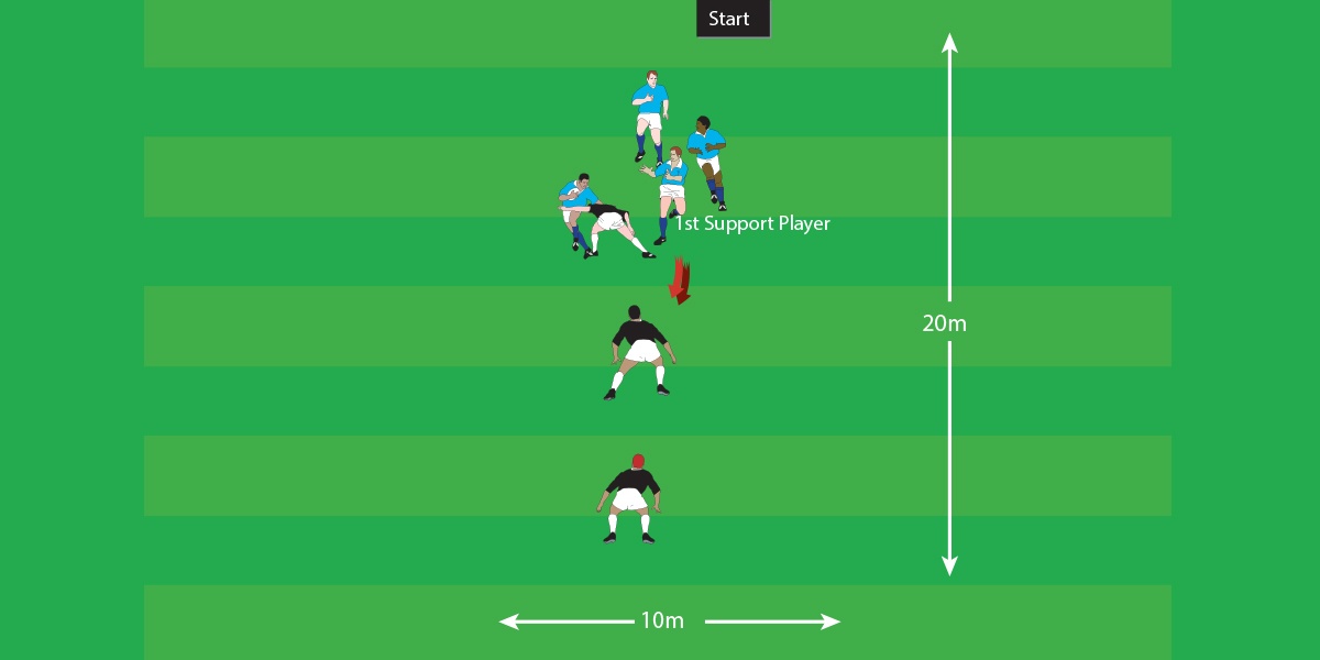 - The initial ball-carrier runs to the first tackler and, upon contact, passes the ball to a supporting player who, in turn, runs onto the second tackler and, after contact, passes to the next support player.
