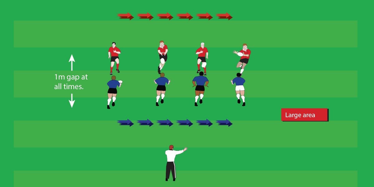 - Each pair has a ball and the drill starts with the player in each pair, separated by one metre, passing back and forward to one another.