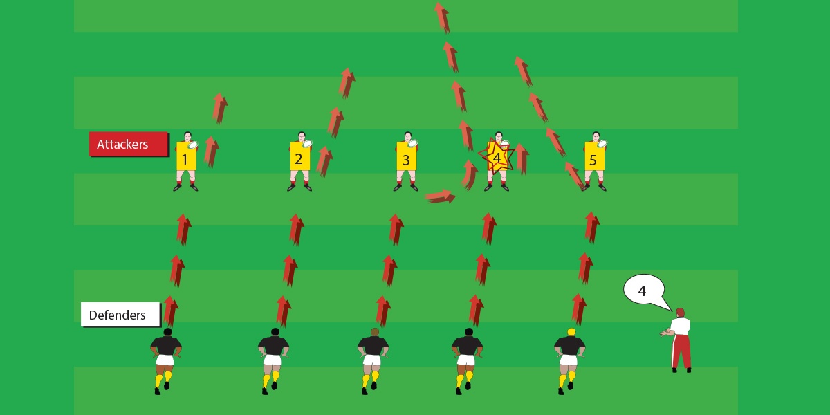 - Use the tackle bags to simulate the positions of opposing attacking players in a backline.
