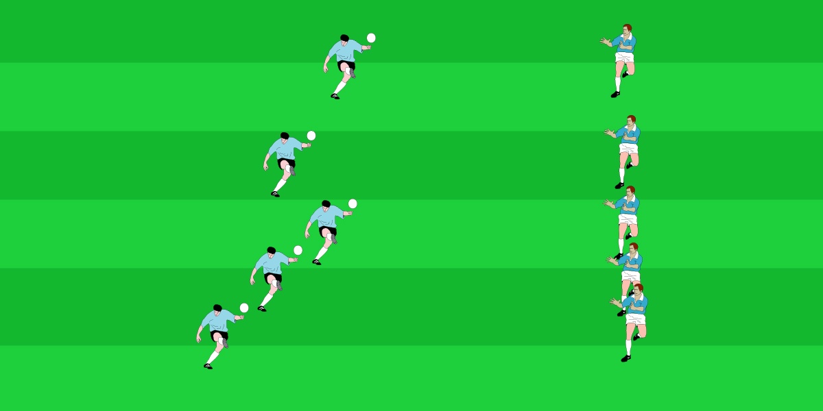 - Player kicks ball to partner.
