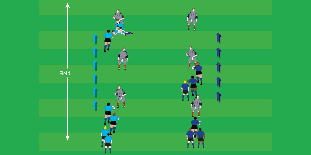 - The group then interpass moving towards the next tackle situation where the process is repeated.