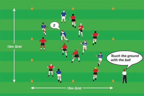 - The players in the team that have the ball must touch the ball on the ground then pass to a team member.